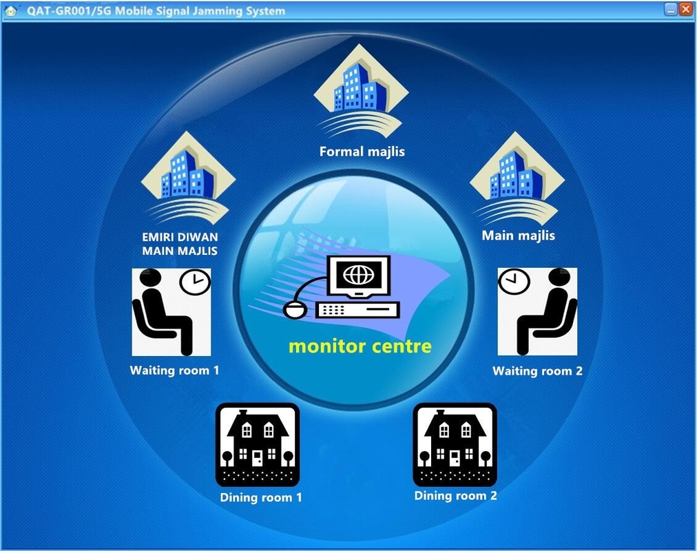ZD-GR001/5G/QAT Jammer สัญญาณมือถือ ได้รับการออกแบบและผลิตเป็นพิเศษสำหรับห้องประชุมระดับสูงของ Qatar Emiri Diwan Palace